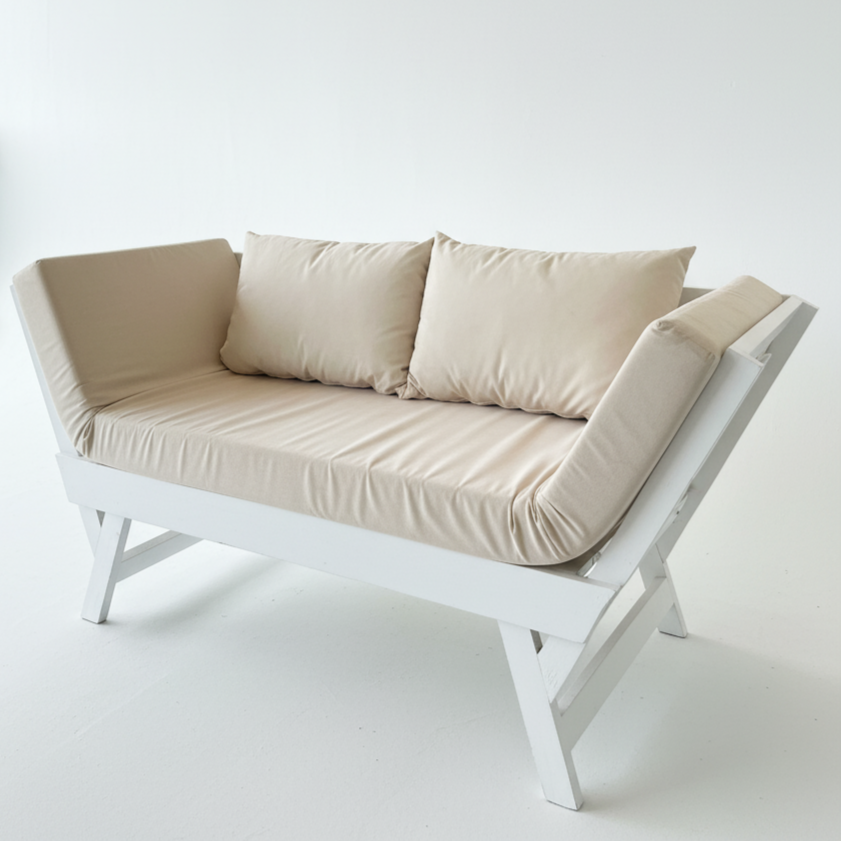 El diseño tipo diván ofrece una postura cómoda y versátil, perfecta para descansar, leer o complementar la decoración con una pieza protagonista. Su estructura sólida garantiza resistencia y durabilidad, mientras que su estética cálida eleva el ambiente sin recargarlo.