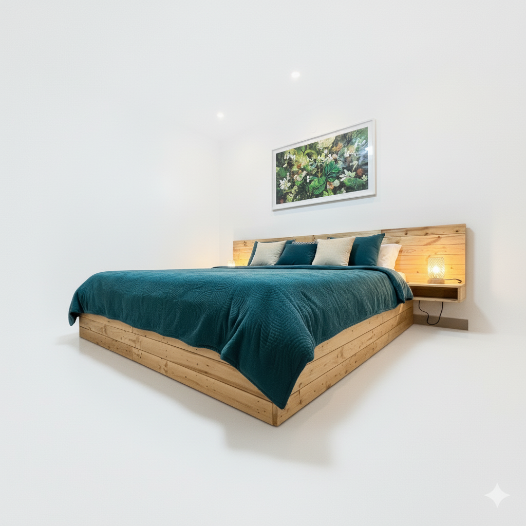 Además, al estar elaborada con madera reutilizada, esta base de cama es una opción sostenible y ecológica, perfecta para quienes buscan un mobiliario responsable con el medio ambiente sin renunciar al diseño.