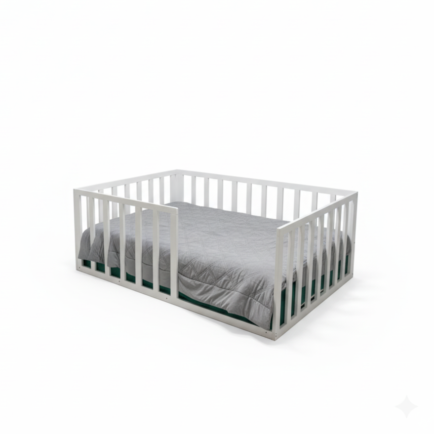 Nuestra Base Montessori Twin 39” x 75” está diseñada para fomentar la autonomía, seguridad y libertad de movimiento del niño desde sus primeras etapas. Fabricada con materiales resistentes y de alta calidad, su estructura baja permite que el niño suba y baje de la cama de forma independiente, promoviendo confianza y desarrollo motriz.